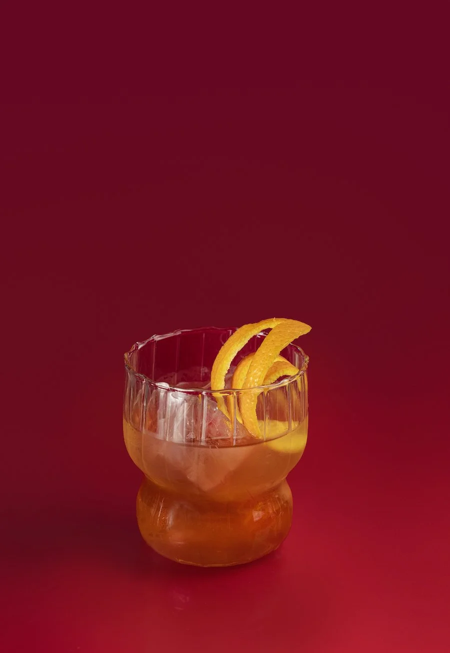 Stir well with big cubes 8-9-oz Double rocks glass, big ice cube or big cubes Combine all ingredients in a glass with ice. Stir for at least 15 seconds. Garnish with an expressed orange peel.